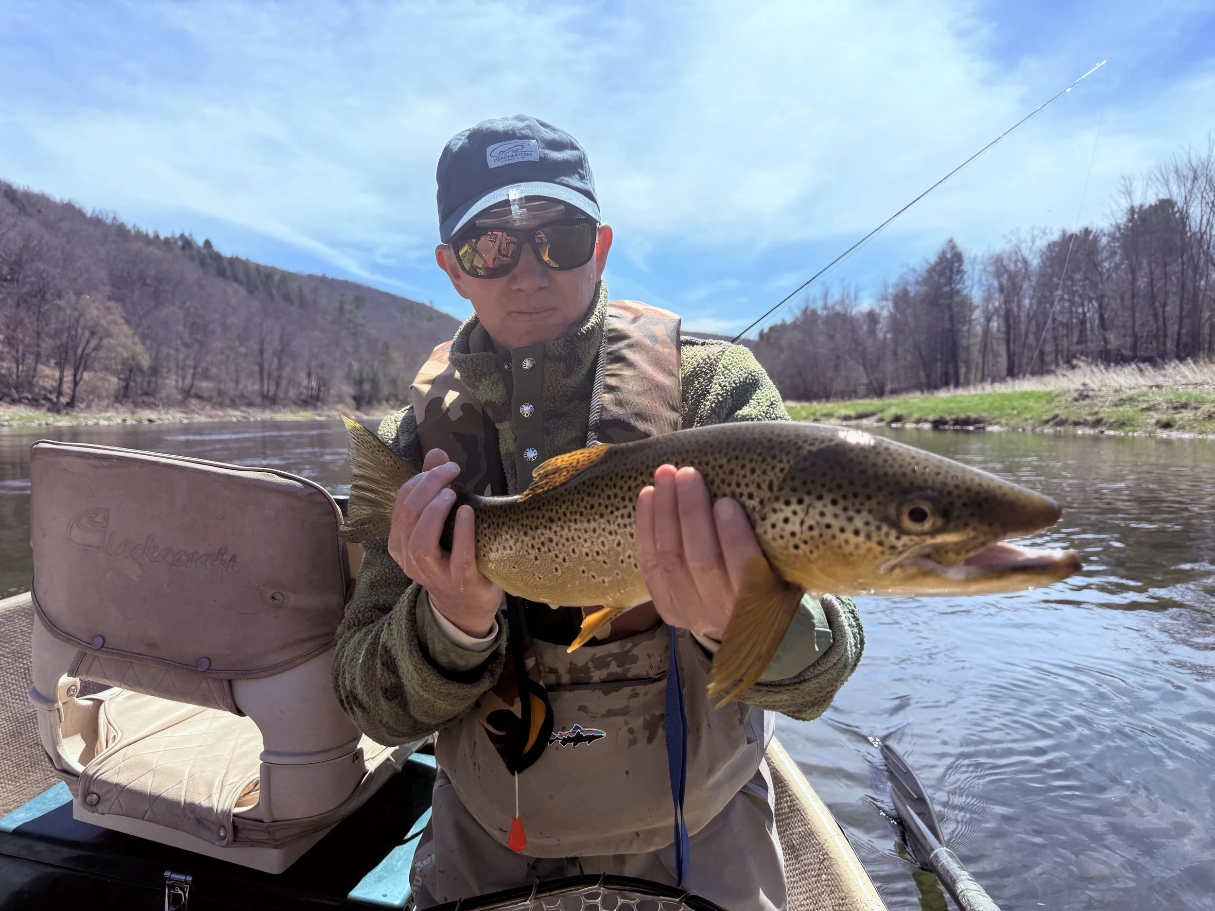 Guide Mike P. with an early season two footer. 24" Brown trout