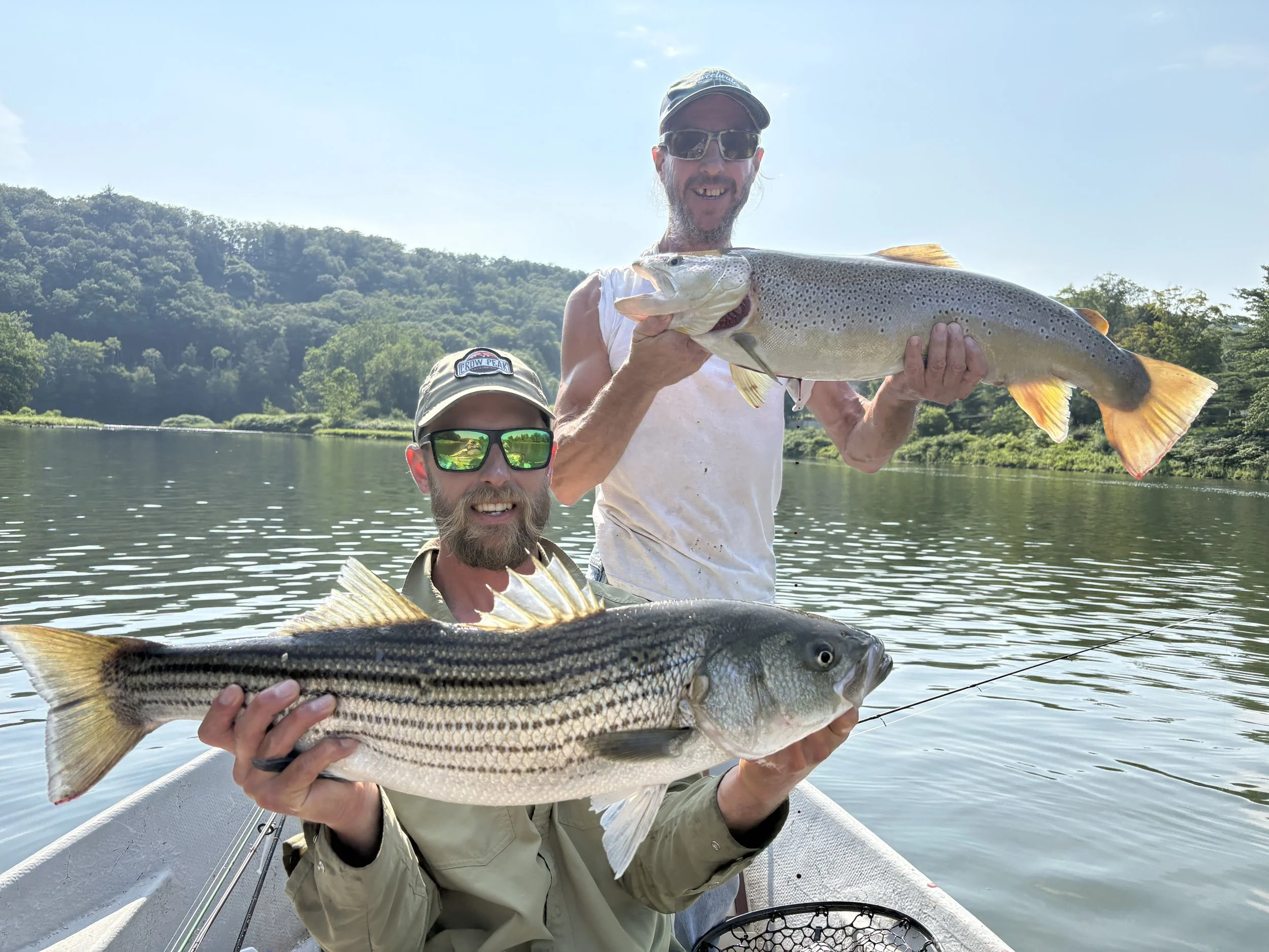 Matty and Evan with two 30” fish at the same time! 30” brown trout and Striper.