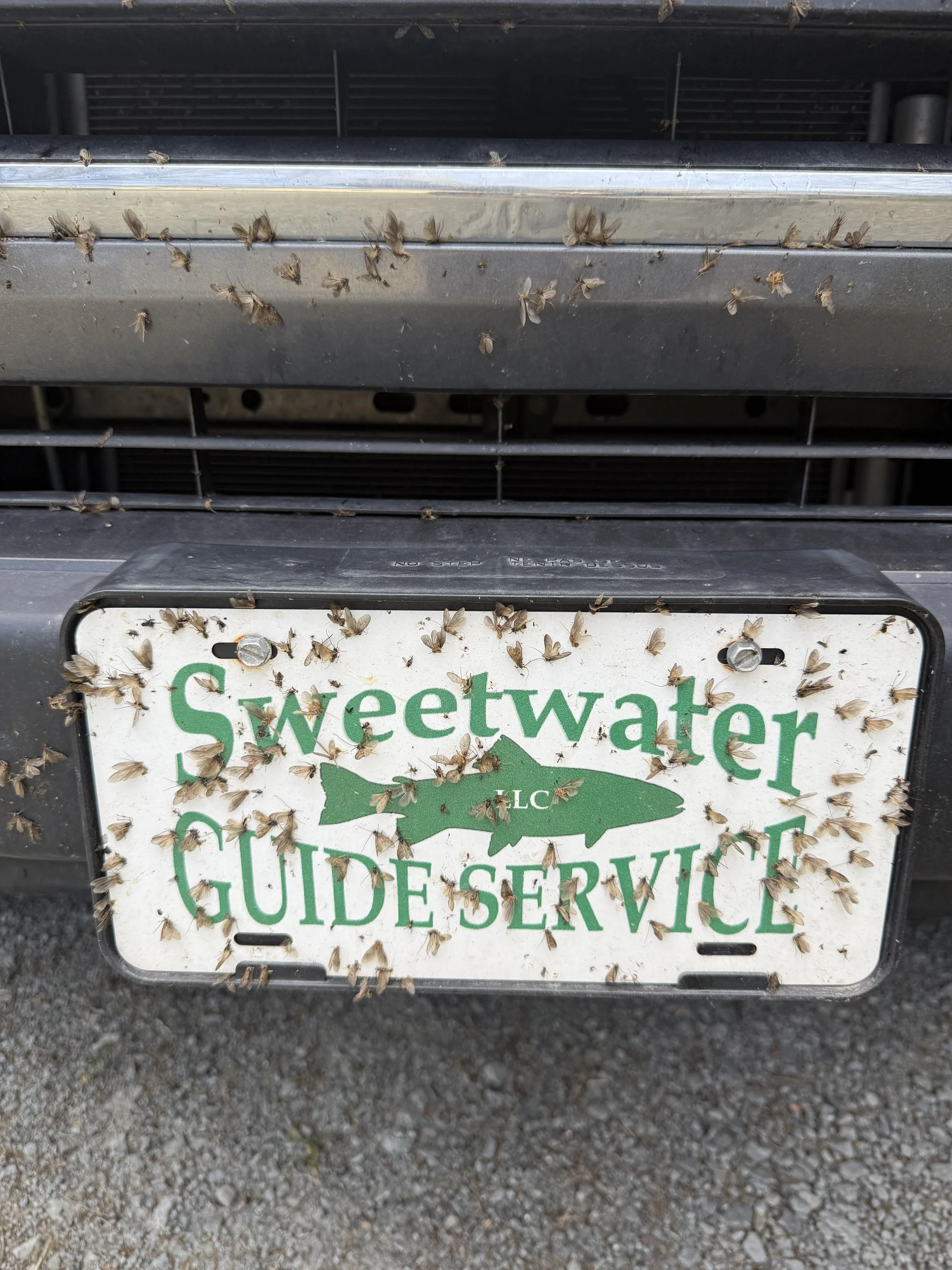 Friday with blue skies again we did okay in the early morning but the fish shut off and were mostly short striking spinning lures throughout the sun. A bonkers apple Caddis “popcorn” caddis hatch broke out. A few fish were rising for them but overall a tough day.
