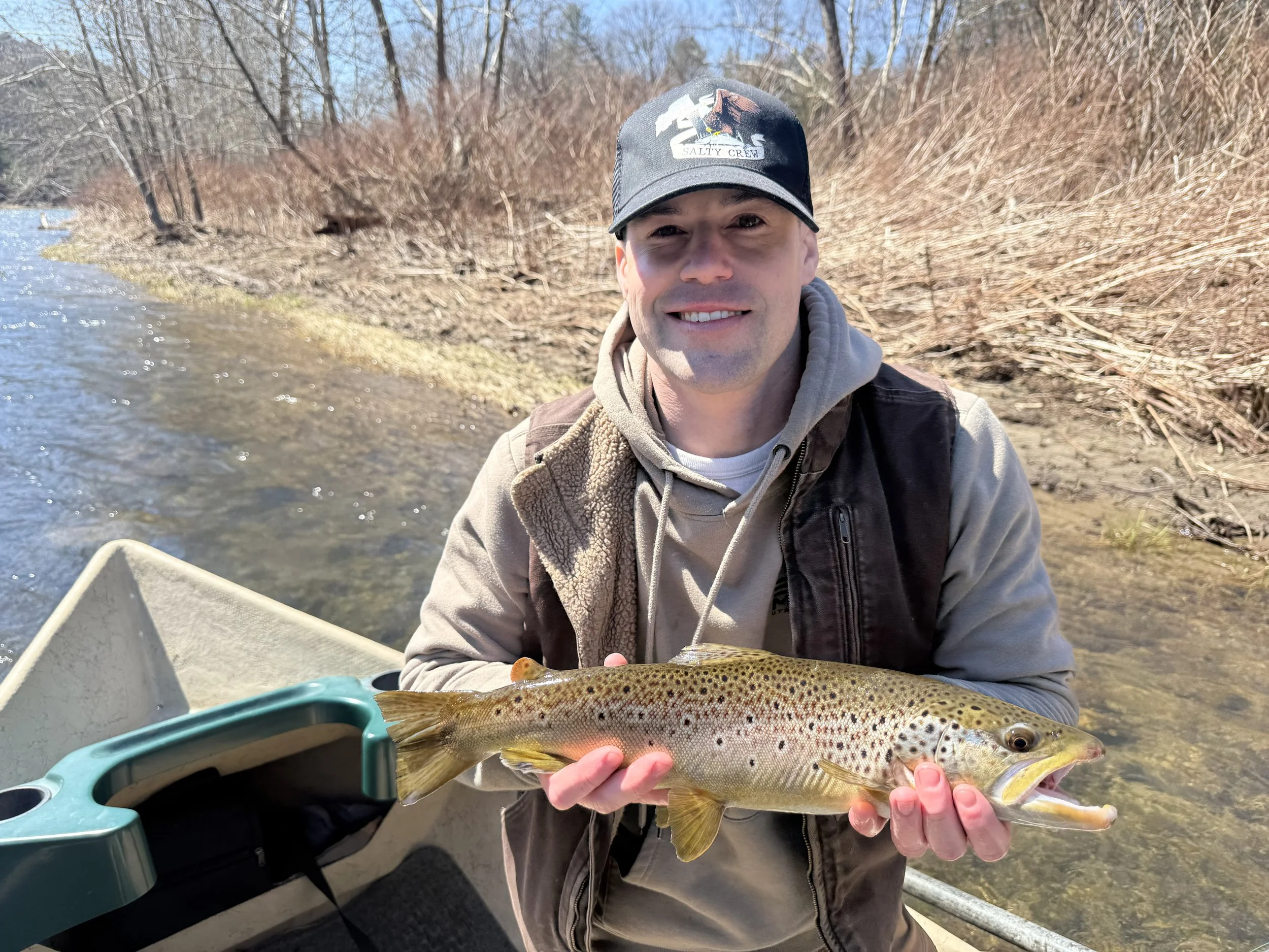 We floated the main stem in about 5,000 cfs today. We worked hard for limited action with bright sun and a steady south wind that never let up. Mark put a handful of quality browns in the boat and one walleye and one bass to round out the day.