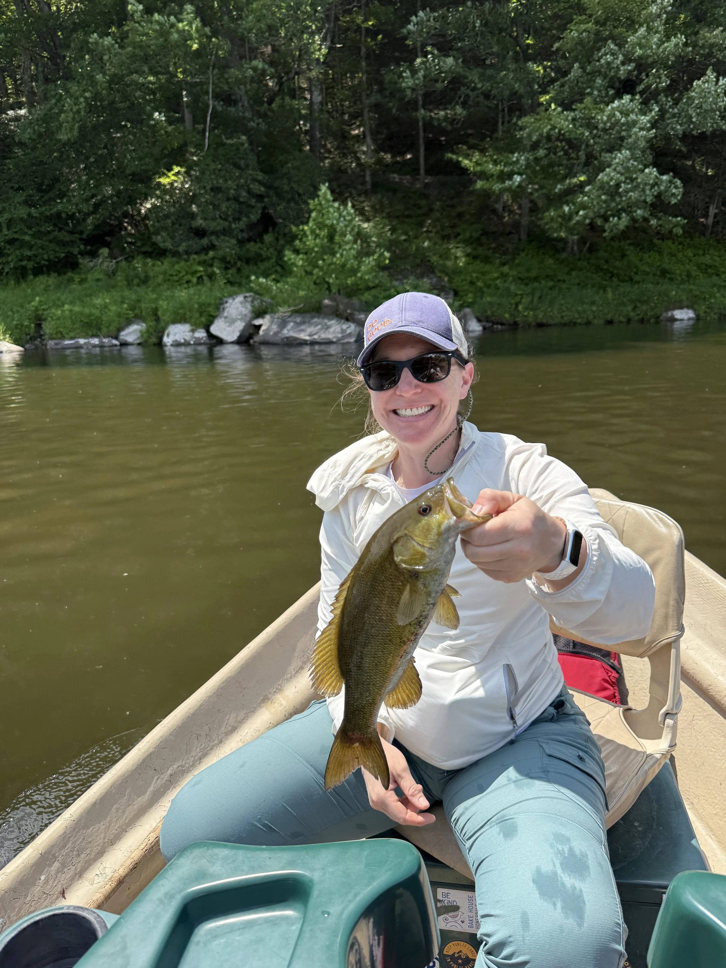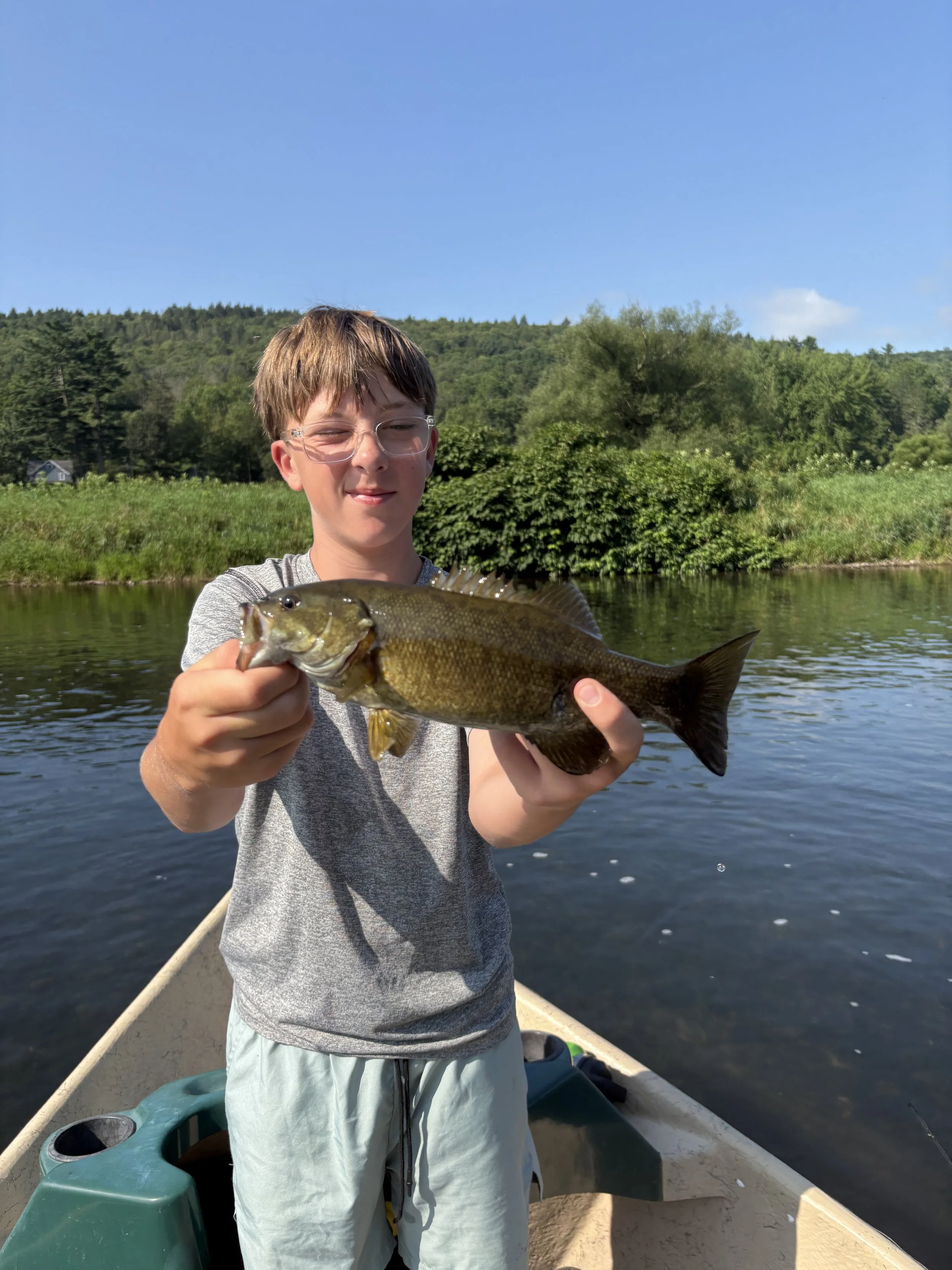 Luke hammering smallmouth.